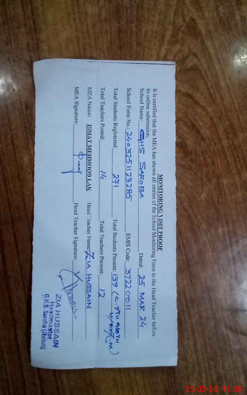 | Attendance Register | Head Teacher | MEA with School | Visit Proof |