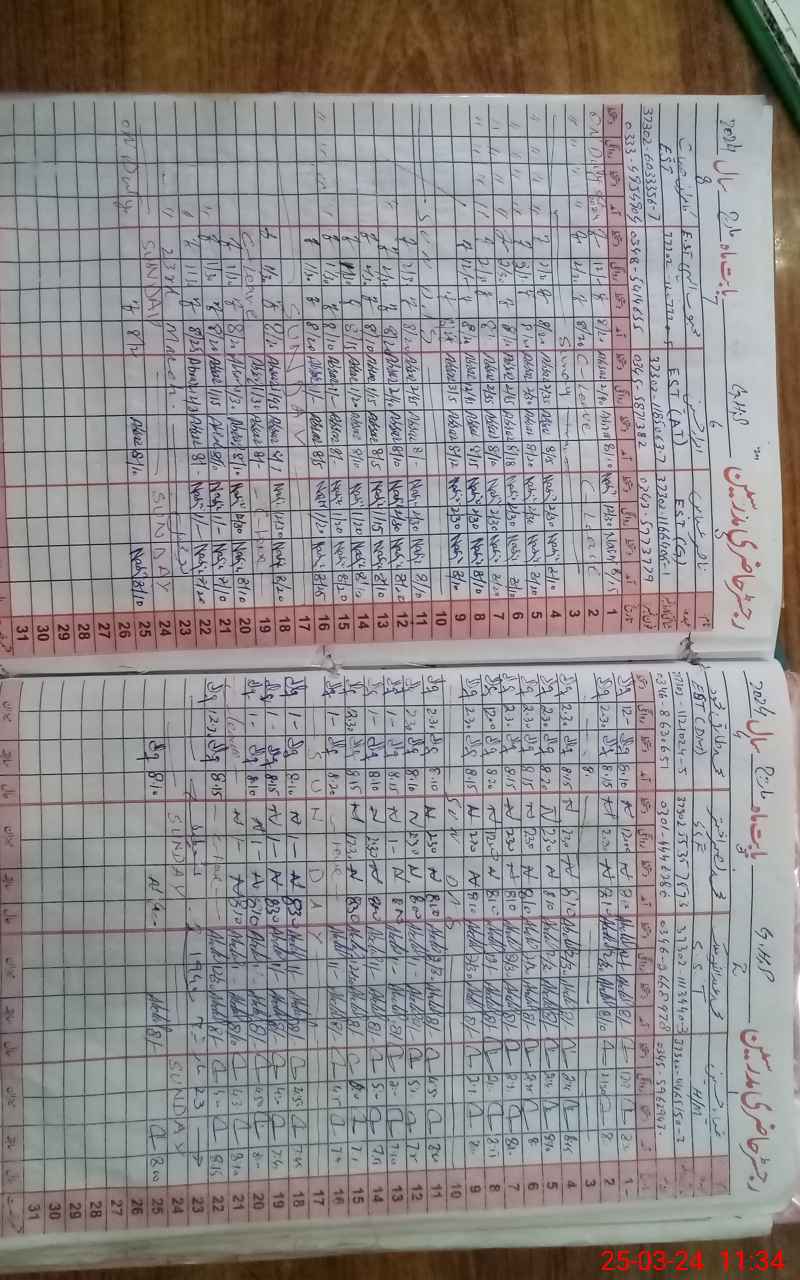 | CNIC | Full Name | Designation | R/C | Absence During Last Calender Month |