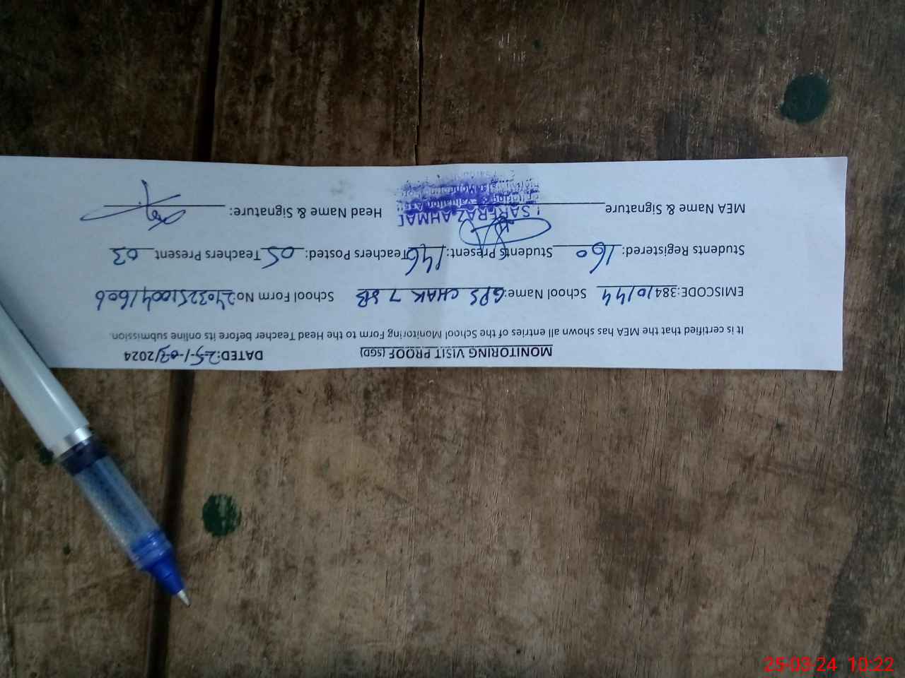 | Attendance Register | Head Teacher | MEA with School | Visit Proof |
