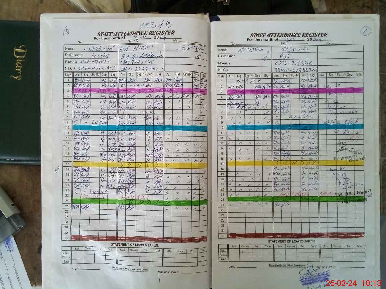| CNIC | Full Name | Designation | R/C | Absence During Last Calender Month |