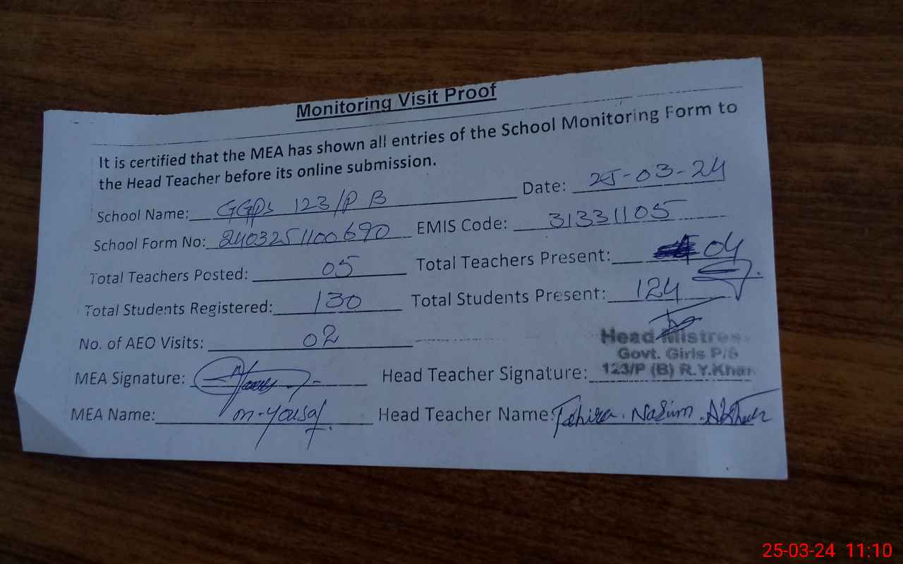 | EMIS Code: 31331105 | Name of School: GGPS 123 B | |||