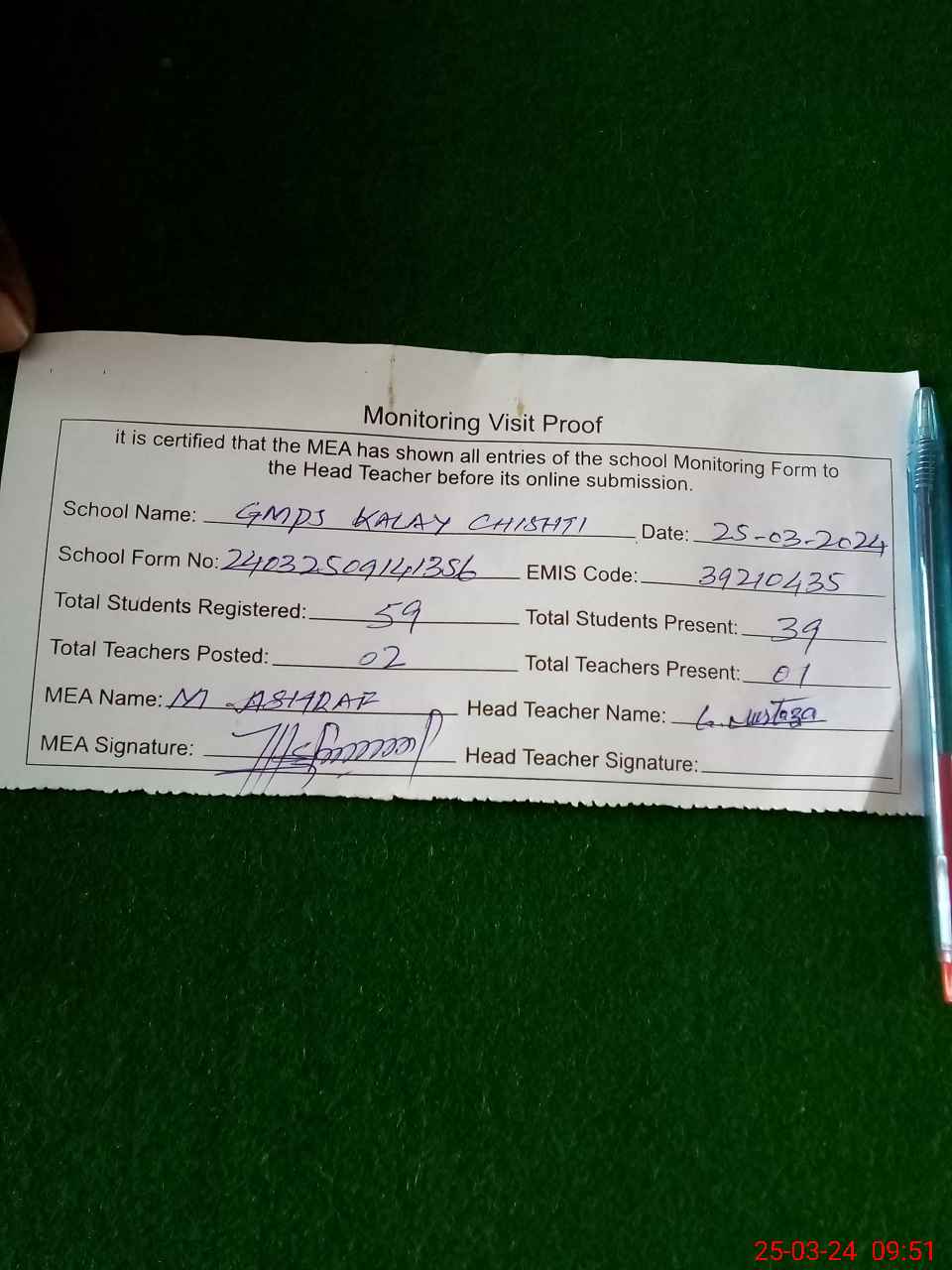| EMIS Code: 39210435 | Name of School: GMPS KALAY CHISHTI | |||