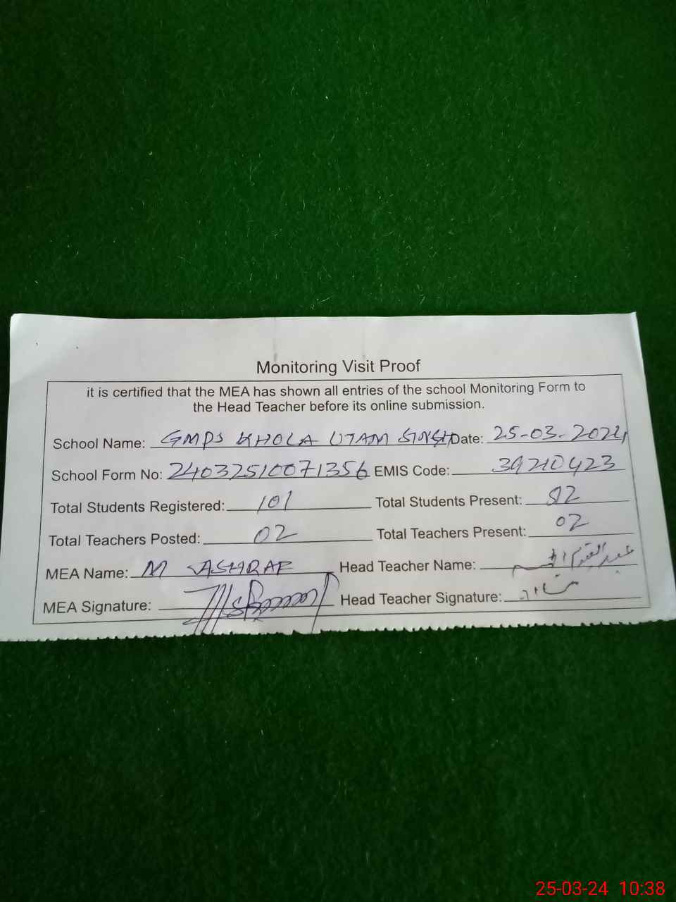 | EMIS Code: 39210423 | Name of School: GMPS KHOLA UTAM SINGH | |||