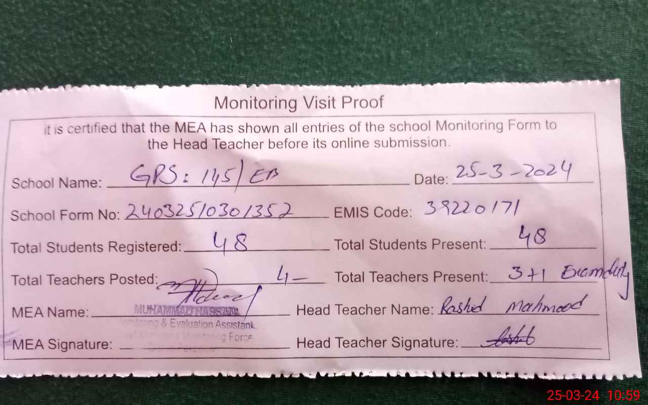 | EMIS Code: 39220171 | Name of School: GPS 145 EB | |||