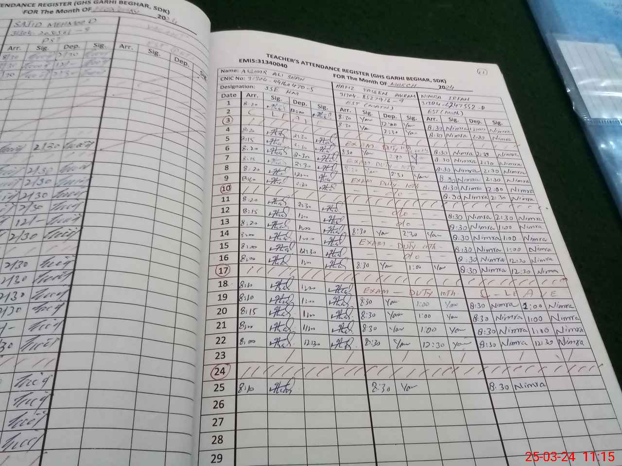 | CNIC | Full Name | Designation | R/C | Absence During Last Calender Month |