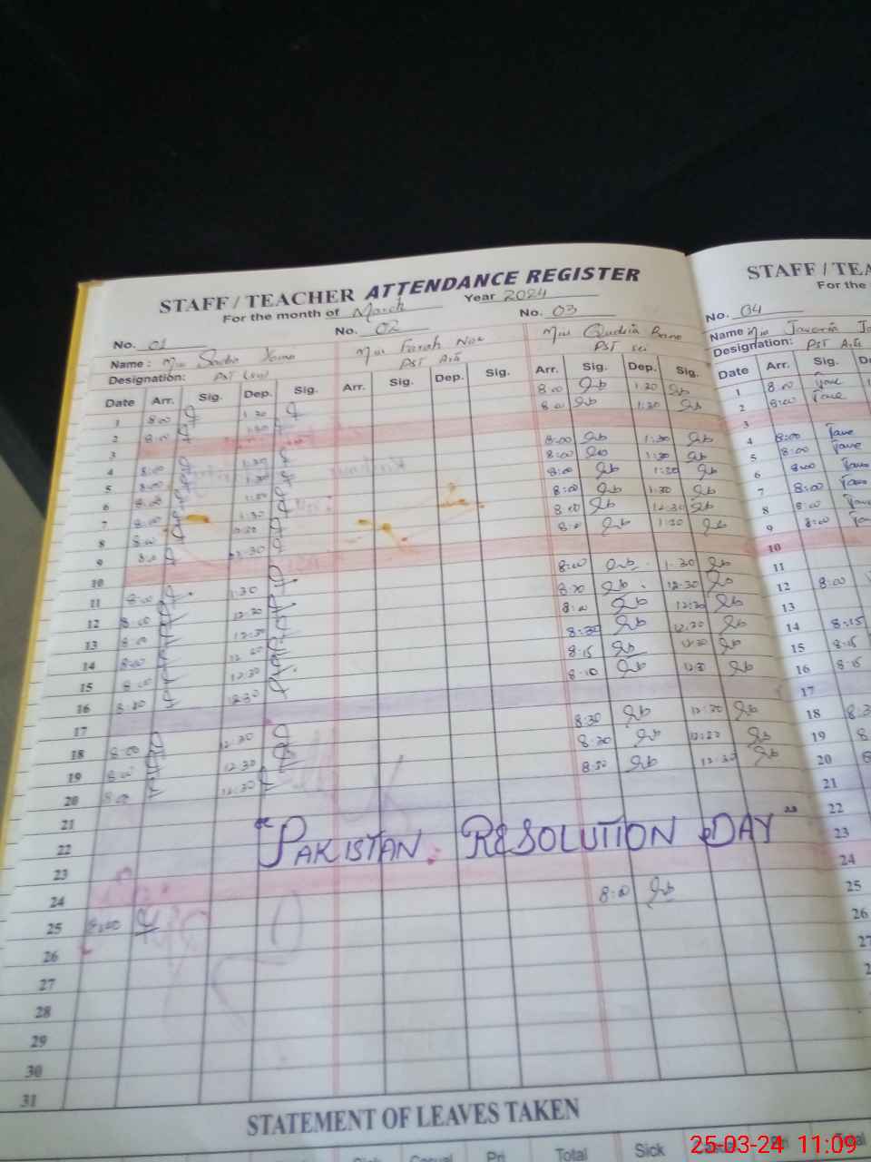 | Leave | Duty | Absent | Maternity | Medical | Ex- Pak |