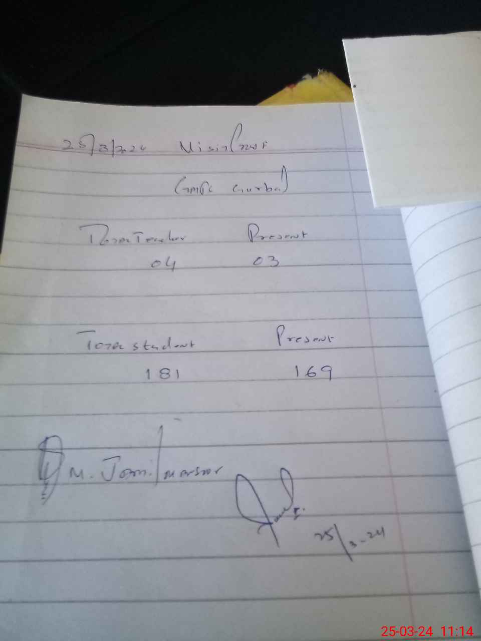 | Attendance Register | Head Teacher | MEA with School | Visit Proof |