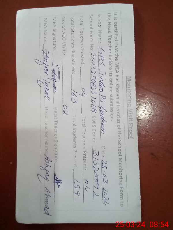 | EMIS Code: 31320092 | Name of School: GPS JINDU PEER QADEEM | |||