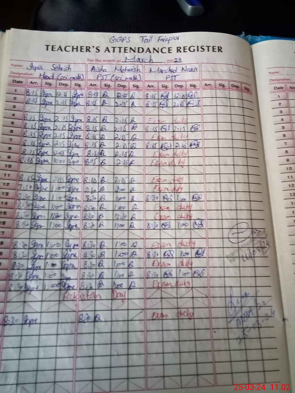 | Leave | Duty | Absent | Maternity | Medical | Ex- Pak |