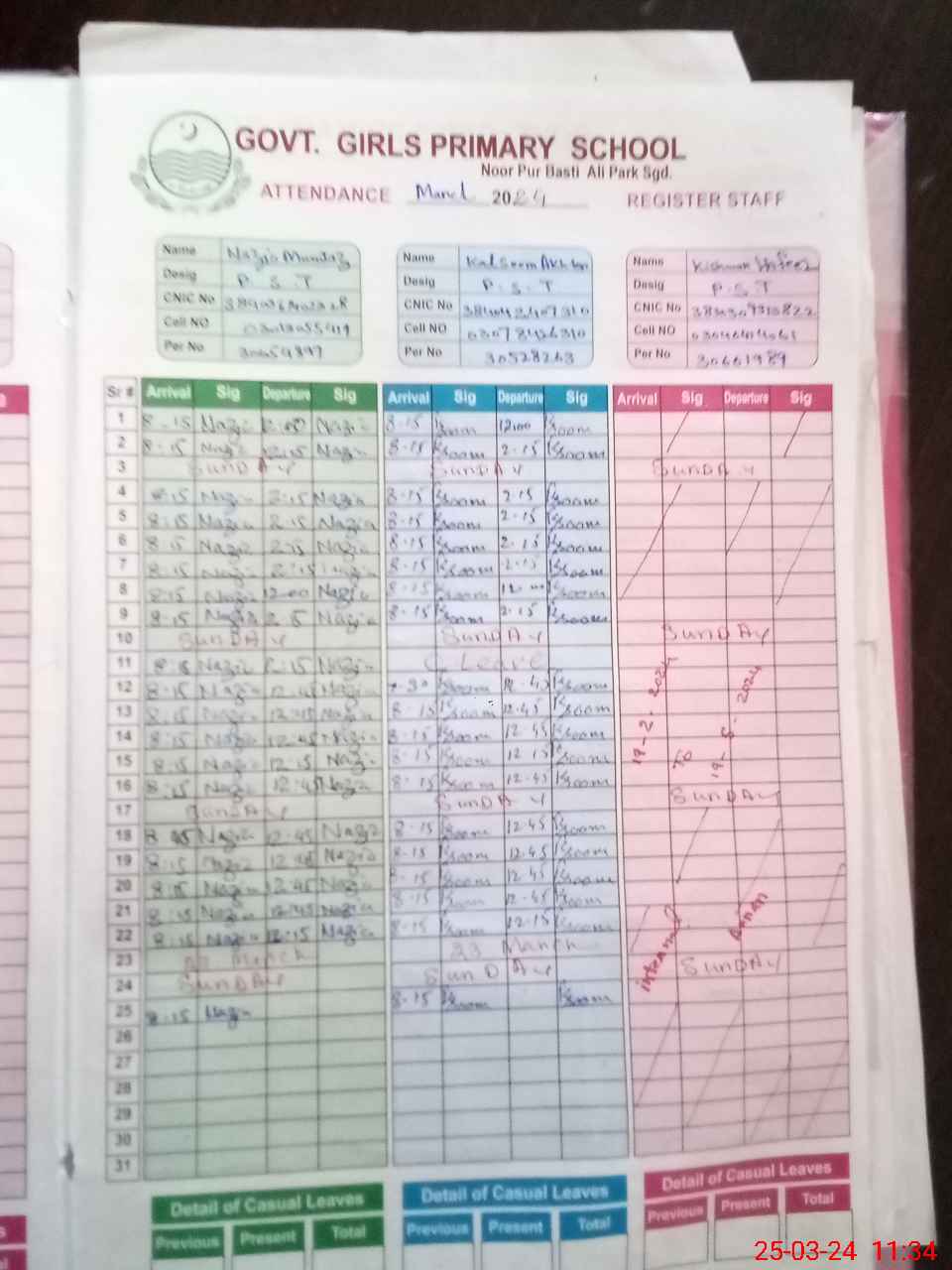 | Name: NA**** MU**** Designation: (School Headmaster's/Headmistress's) PST Phone/Cell Number: 03**** |