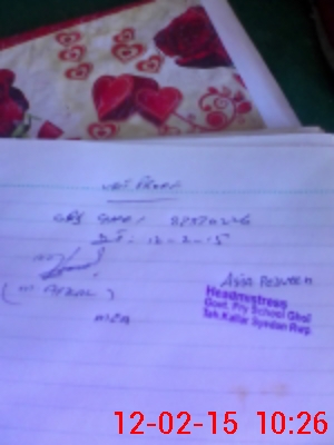 | Name: Mu**** Ae**** Ah**** Designation: (School Headmaster's/Headmistress's) PST Phone/Cell Number: 03**** |