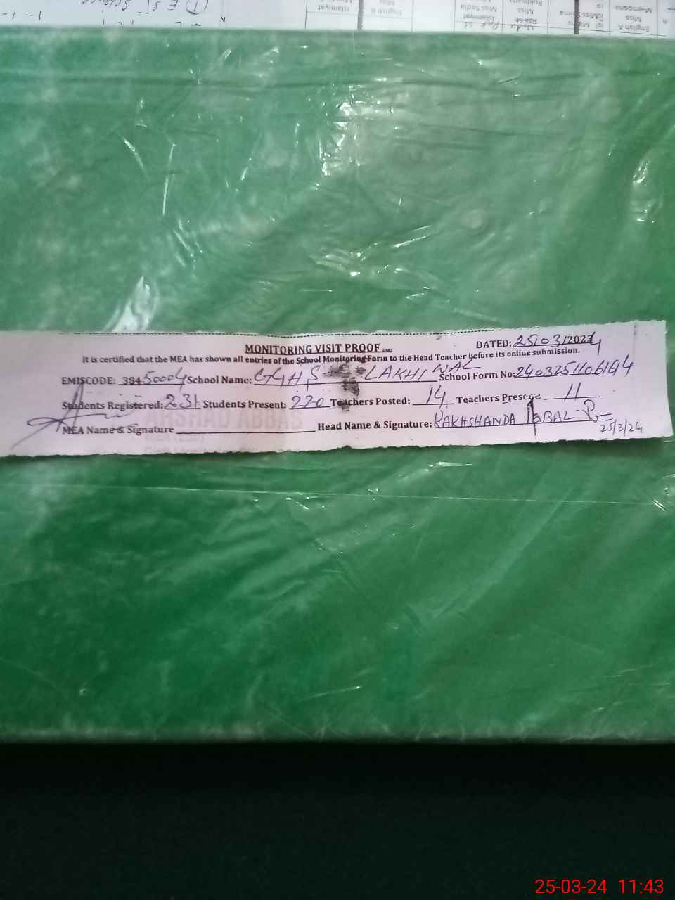 | EMIS Code: 38450004 | Name of School: GGHS LAKHI WAL | |||