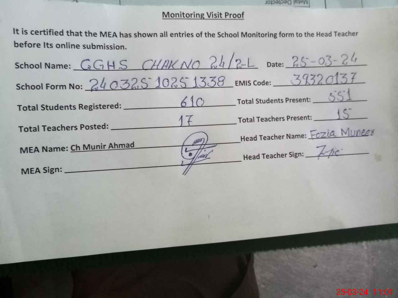 | EMIS Code: 39320137 | Name of School: GGHS CHAK NO. 24/2.L | |||