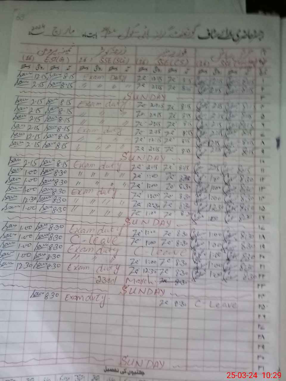 | 35**** | Sa**** Ak**** | 3 | 1 | 0 | 0 | 0 | 0 | 0 | 0 | 0 | 0 | 0 | Exam Duty |