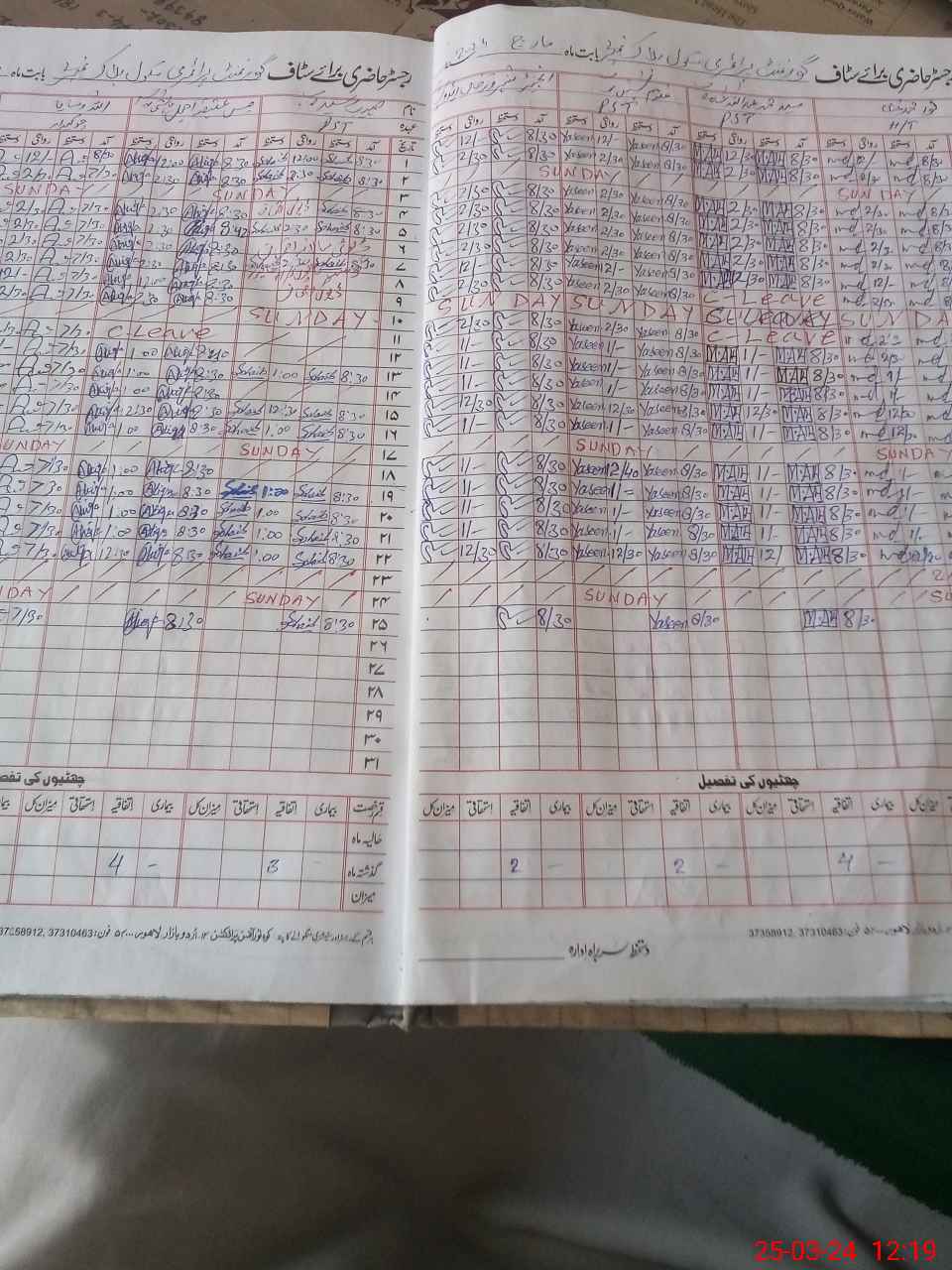 | CNIC | Full Name | Designation | R/C | Absence During Last Calender Month |