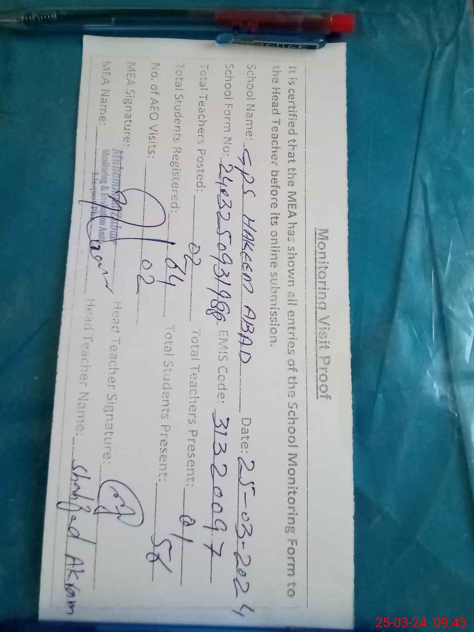 | EMIS Code: 31320097 | Name of School: GPS HAKEEM ABAD | |||