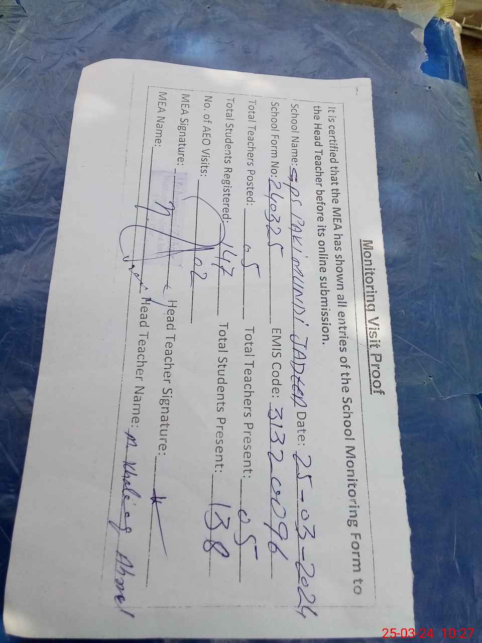 | EMIS Code: 31320096 | Name of School: GPS PAKI MANDI JADEED | |||