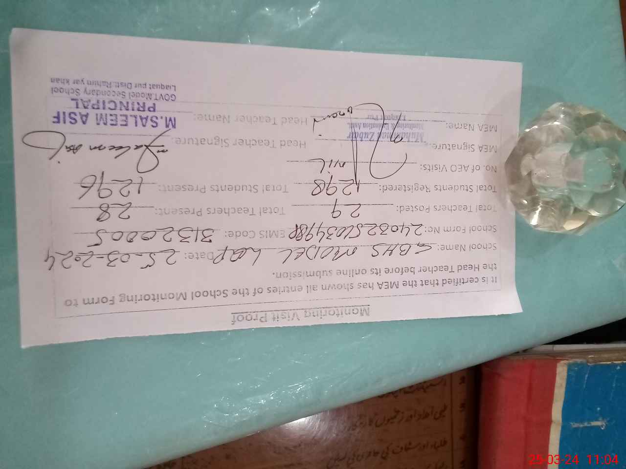 | Name: M.**** AS**** Designation: (School Headmaster's/Headmistress's) PRINCIPAL Phone/Cell Number: 03**** |