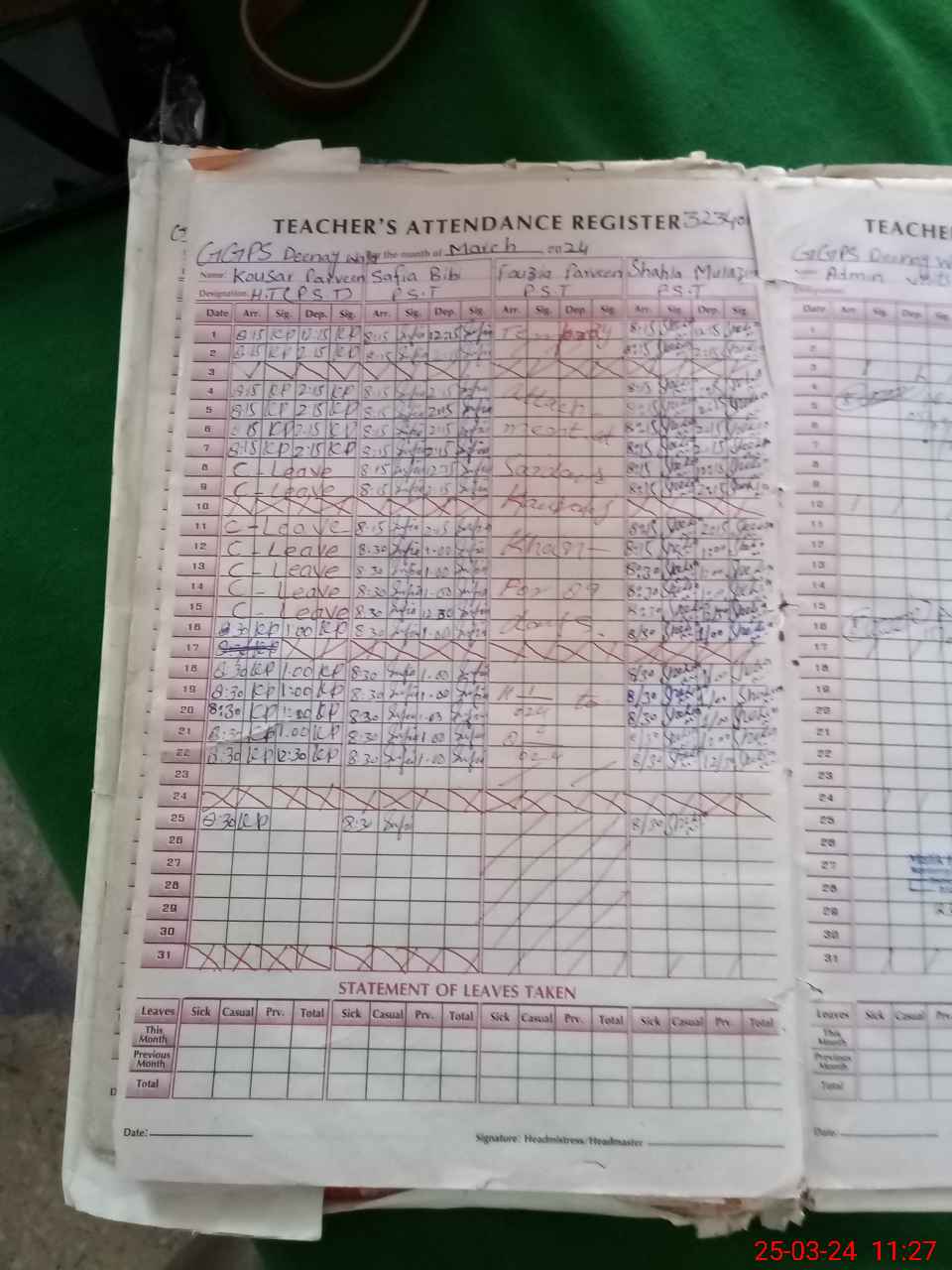 | Leave | Duty | Absent | Maternity | Medical | Ex- Pak |