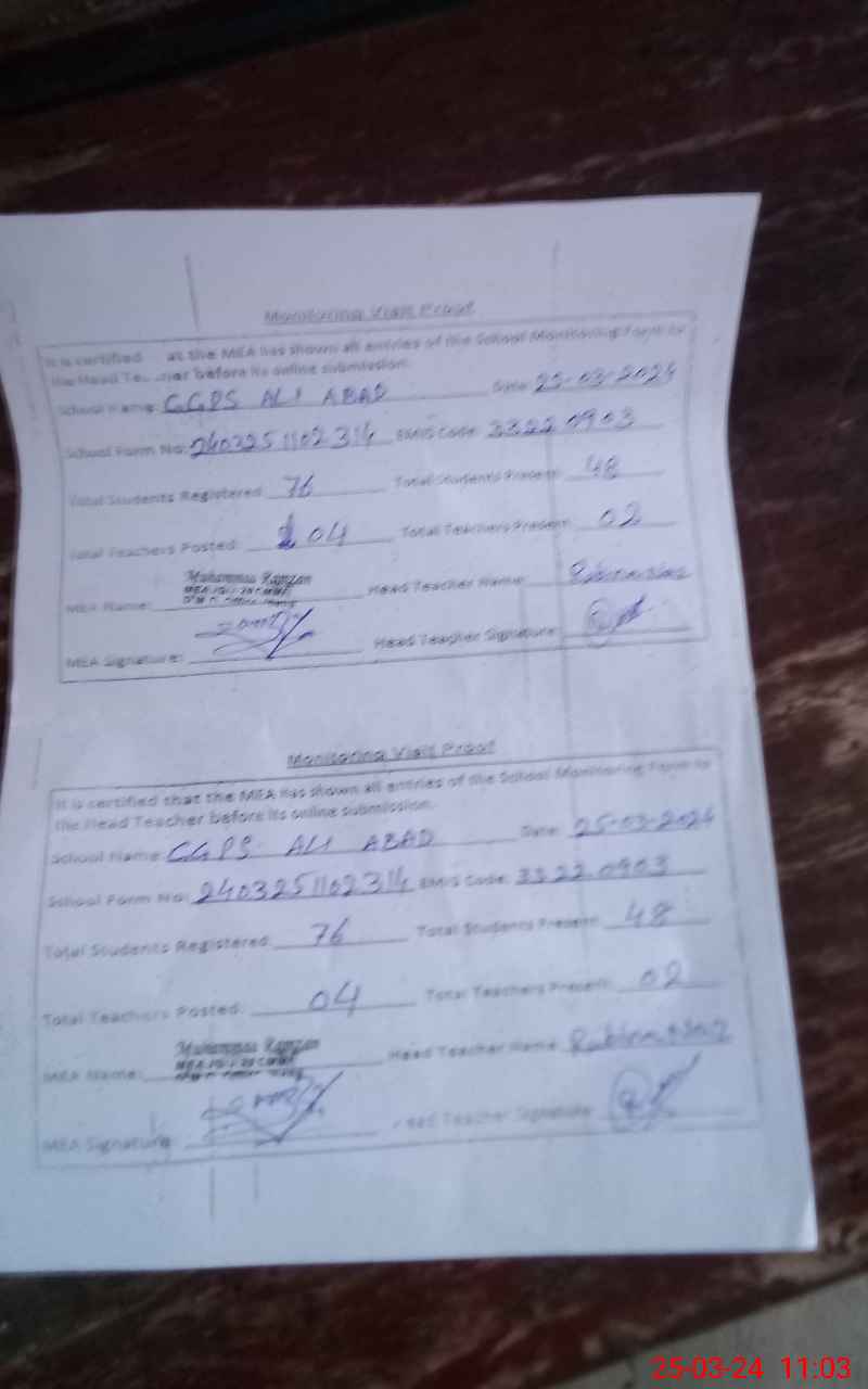 | EMIS Code: 33220903 | Name of School: GGPS ALI ABAD | |||