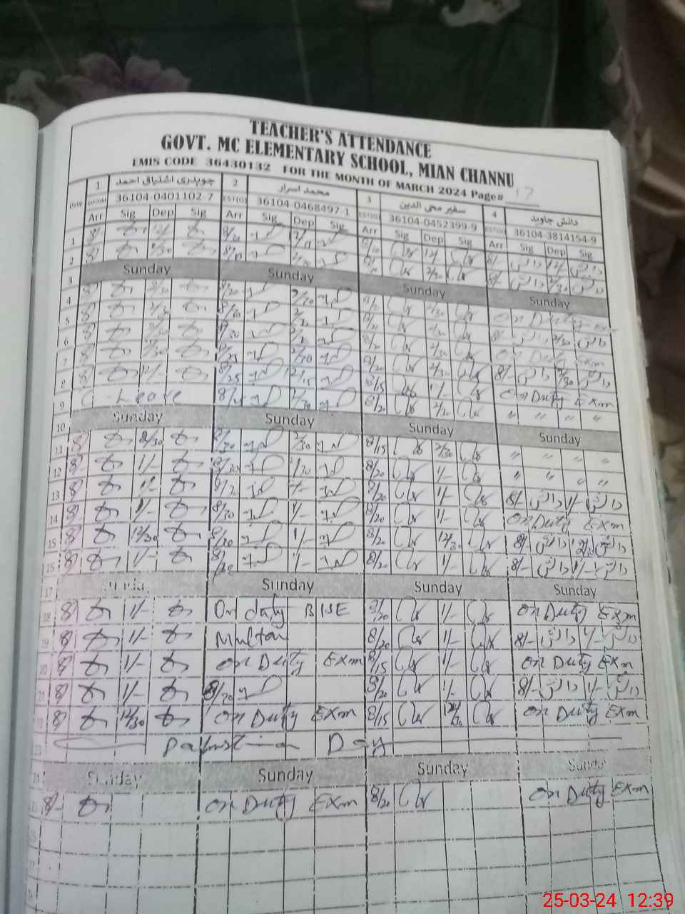 | 36**** | Mu**** Is**** | 1 | 0 | 10 | 0 | 0 | 0 | 0 | 0 | 0 | 0 | Exam Duty | |