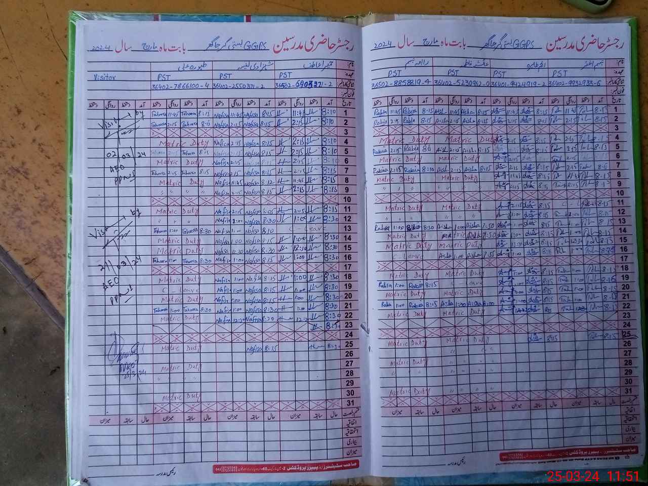 | 36**** | Ta**** Al**** | PST | Temporary | 2 | 7 | 0 | 0 | 0 | 0 | 0 | 0 | 2 | Exam Duty |