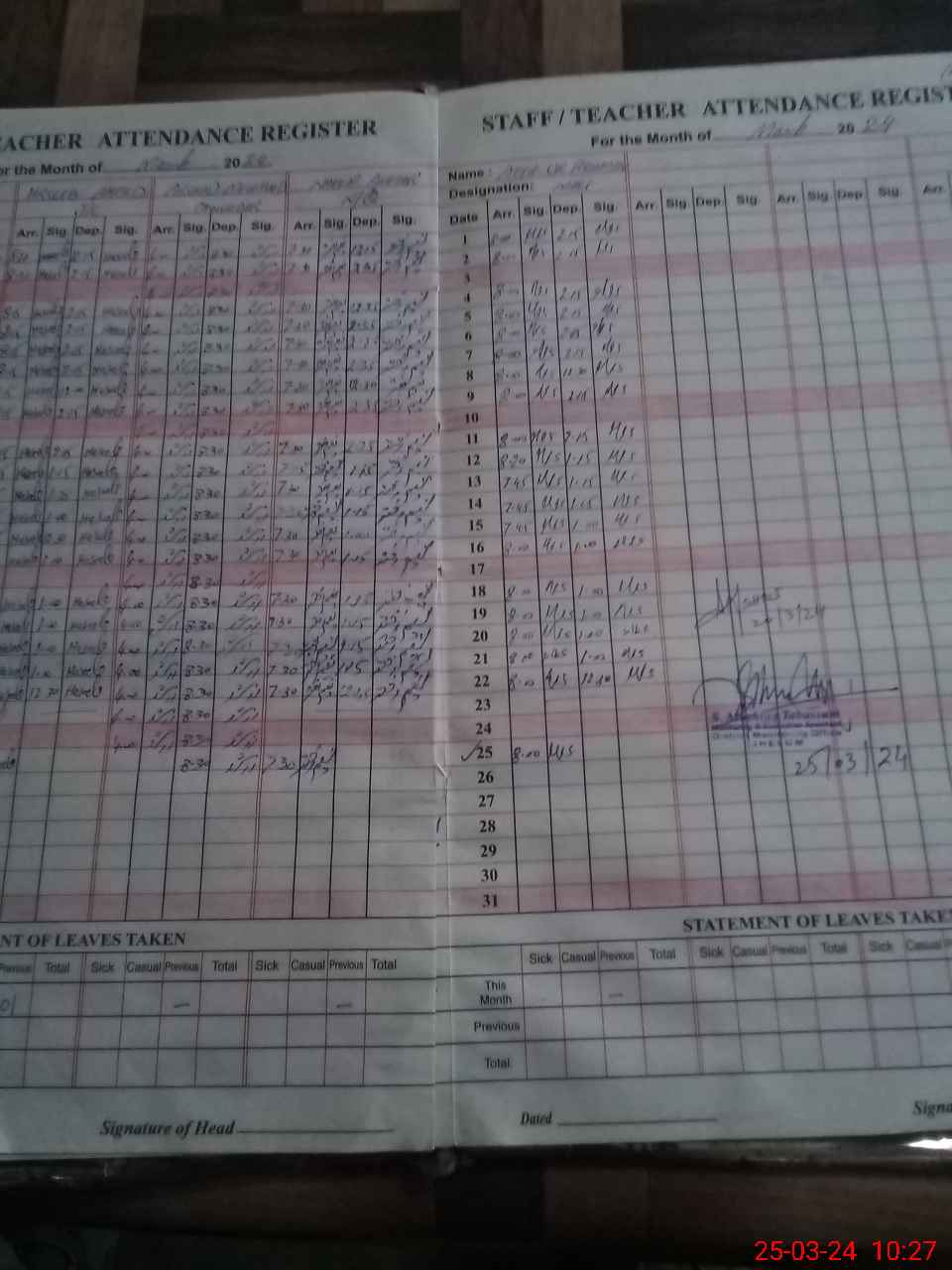 | Attendance Register | Head Teacher | MEA with School | Visit Proof |