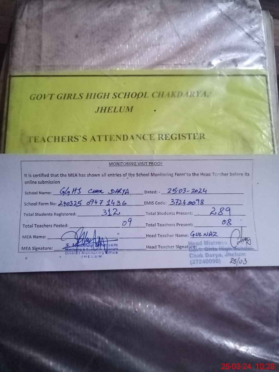 | EMIS Code: 37240098 | Name of School: GGHS CHAK DARYA | |||