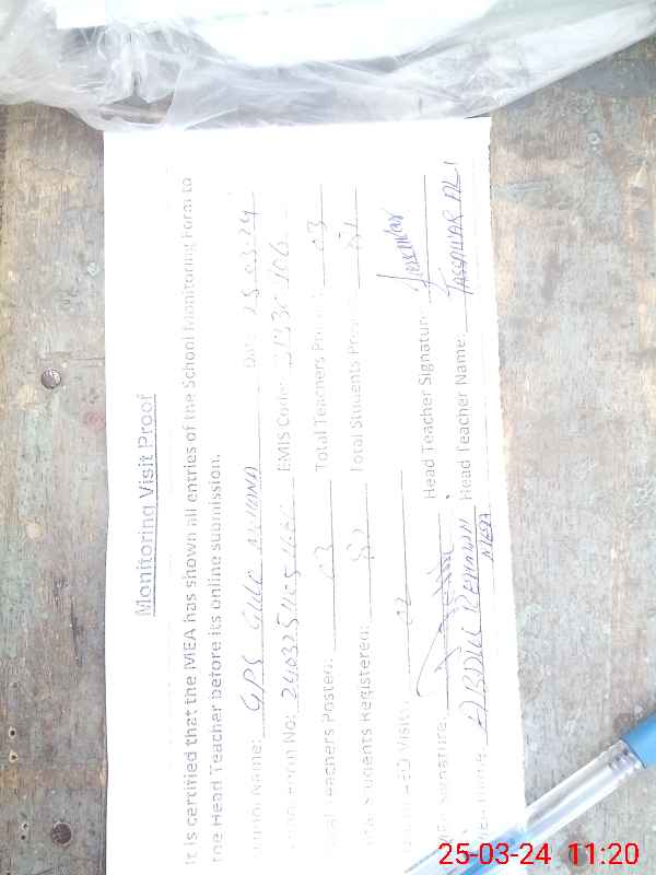 | Attendance Register | Head Teacher | MEA with School | Visit Proof |