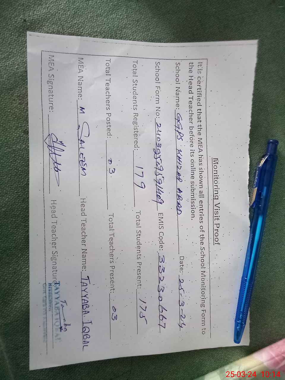 | EMIS Code: 33230667 | Name of School: GGPS KHIZAR ABAD | |||