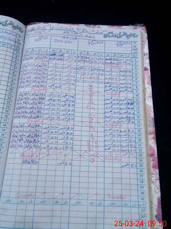 | Leave | Duty | Absent | Maternity | Medical | Ex- Pak |