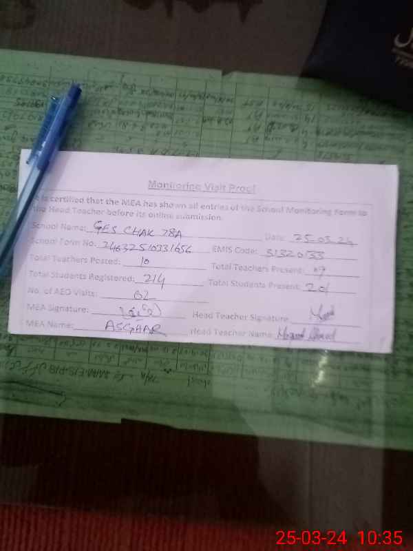 | EMIS Code: 31320133 | Name of School: GES CHAK 78/A | |||