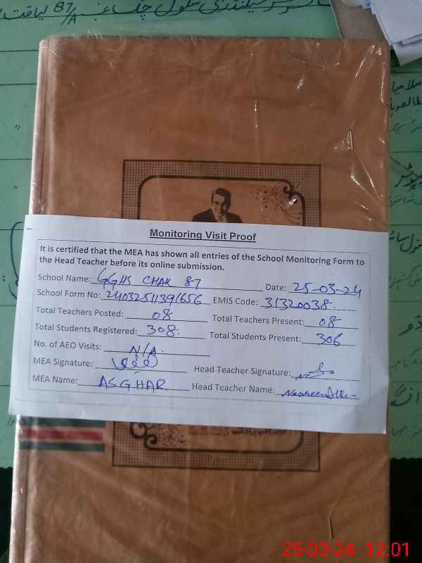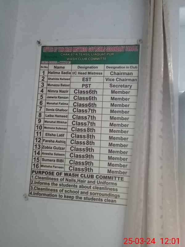 | EMIS Code: 31320038 | Name of School: GGHS CHAK 87/A LIAQAT PUR | |||