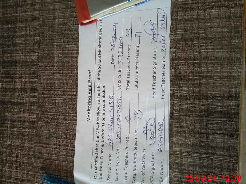 | Attendance Register | Head Teacher | MEA with School | Visit Proof |