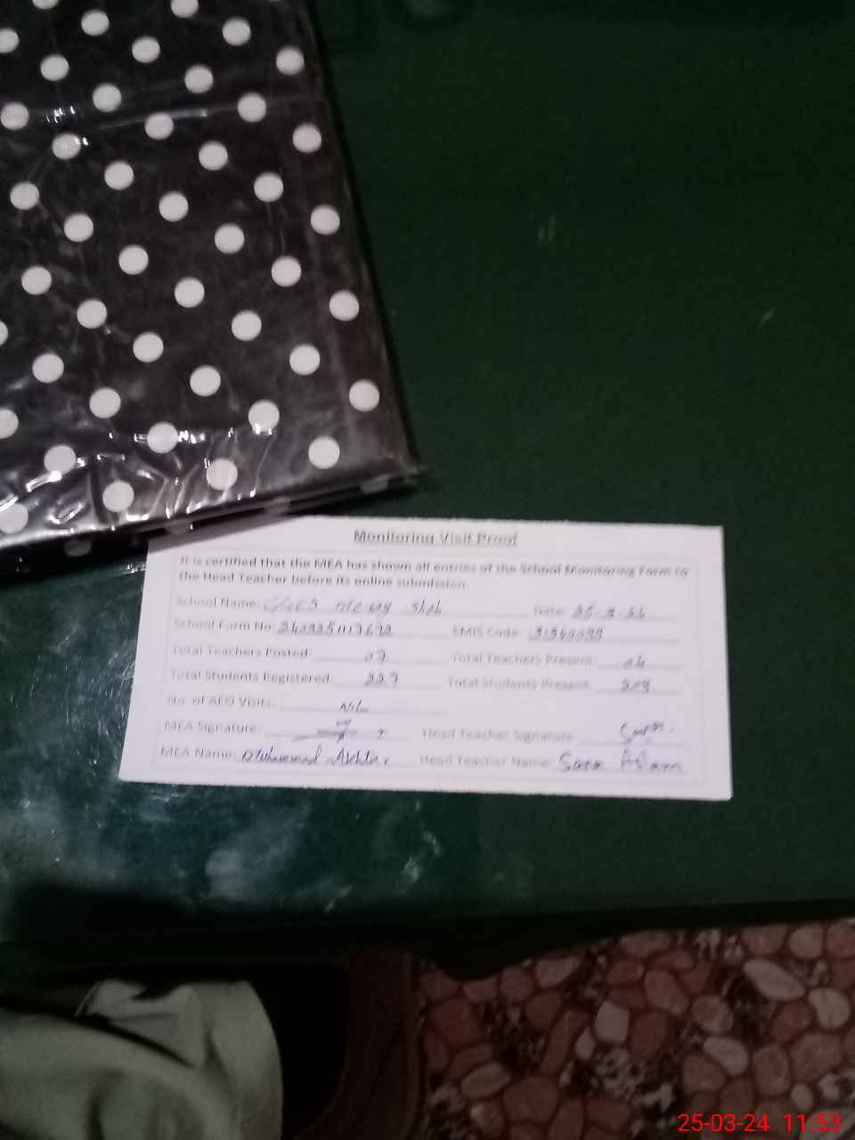 | Certified that this School was Inspected by the Undersigned MEA/DMO Today and the Information Stated Above is as Per Record. | |||||