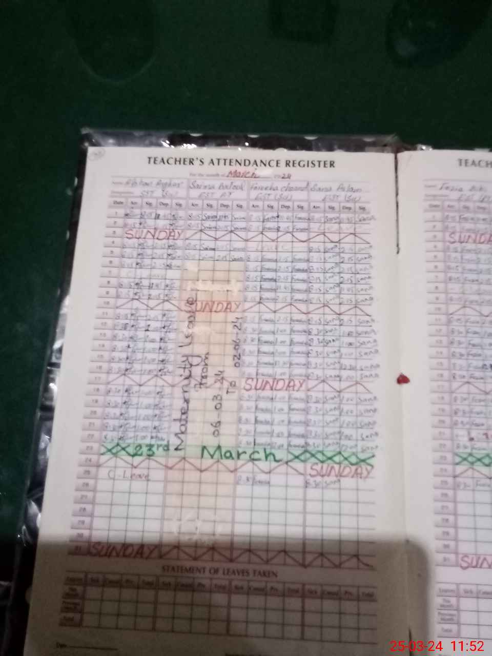 | 36**** | Sa**** Ba**** | Regular | 2 | 0 | 0 | 0 | 0 | 0 | 0 | 0 | 2 | Maternity | |