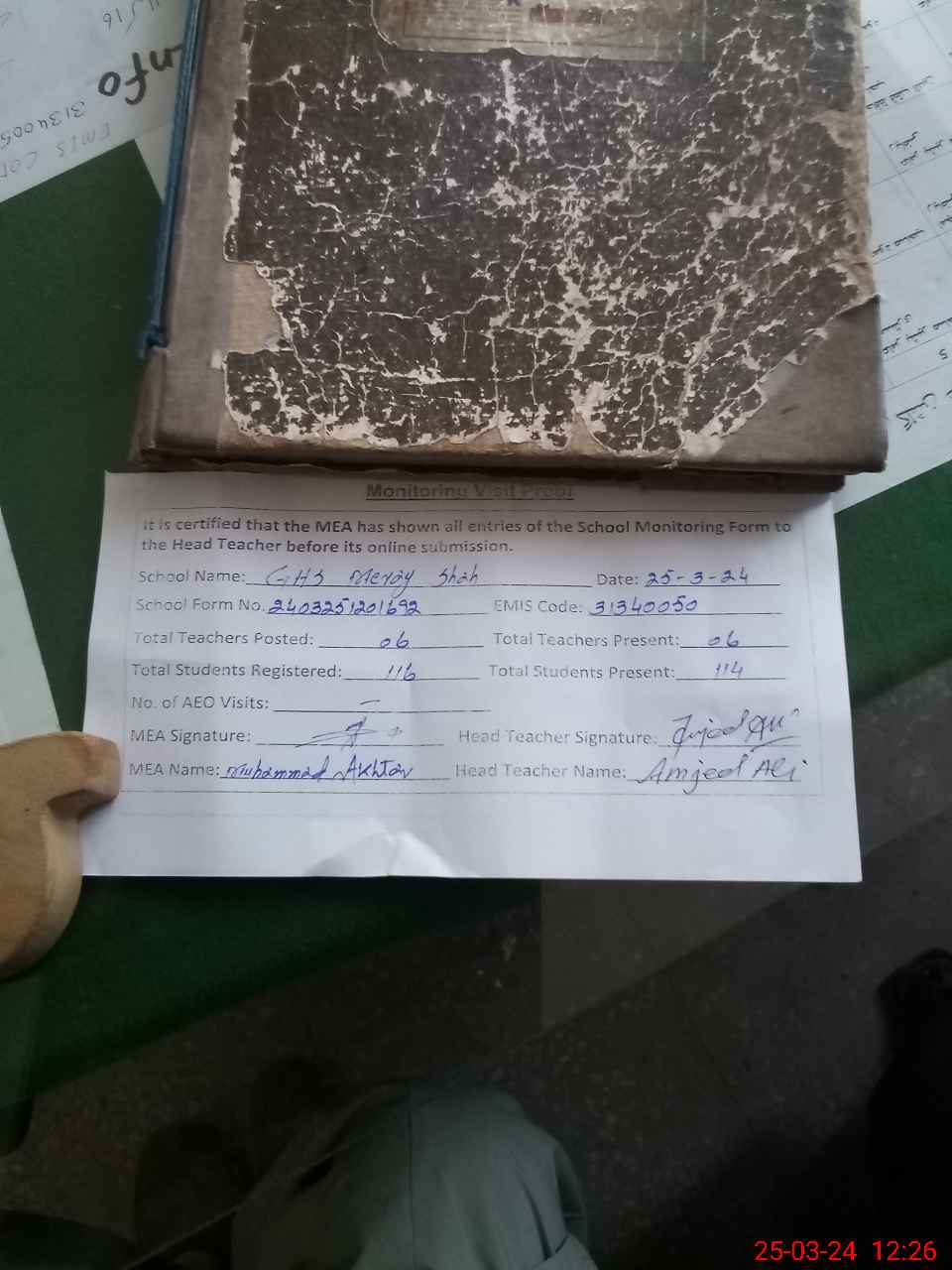 | EMIS Code: 31340050 | Name of School: GHS MERAY SHAH | |||