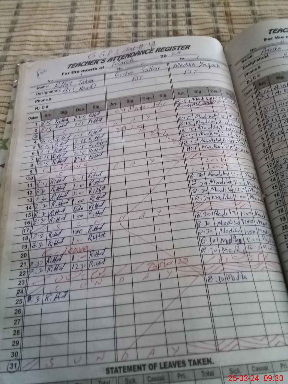 | Name: RI**** TA**** Designation: (School Headmaster's/Headmistress's) PST Phone/Cell Number: 03**** |