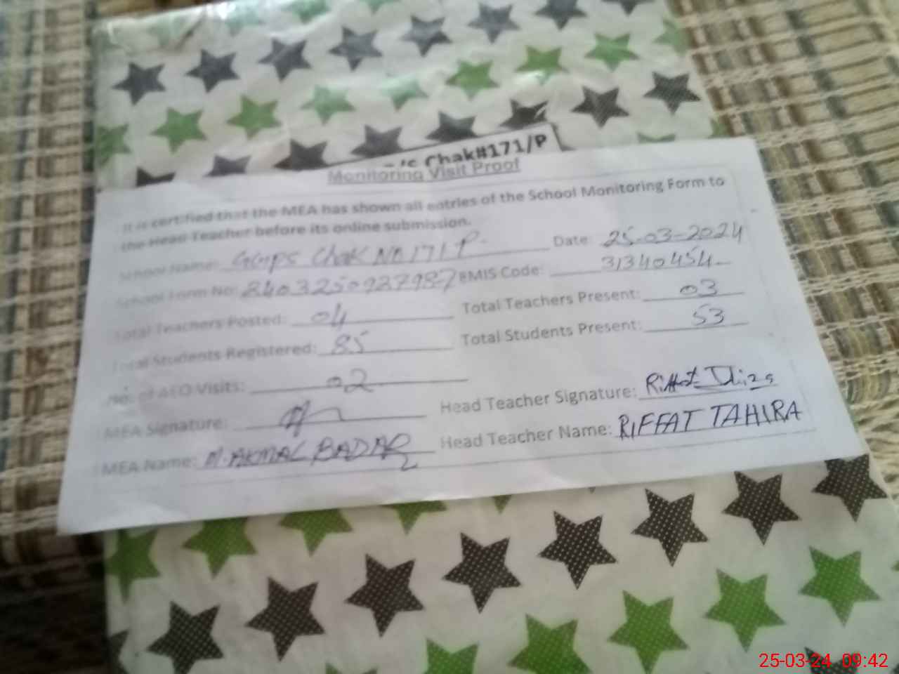 | EMIS Code: 31340454 | Name of School: GGPS CHAK NO. 171/P | |||