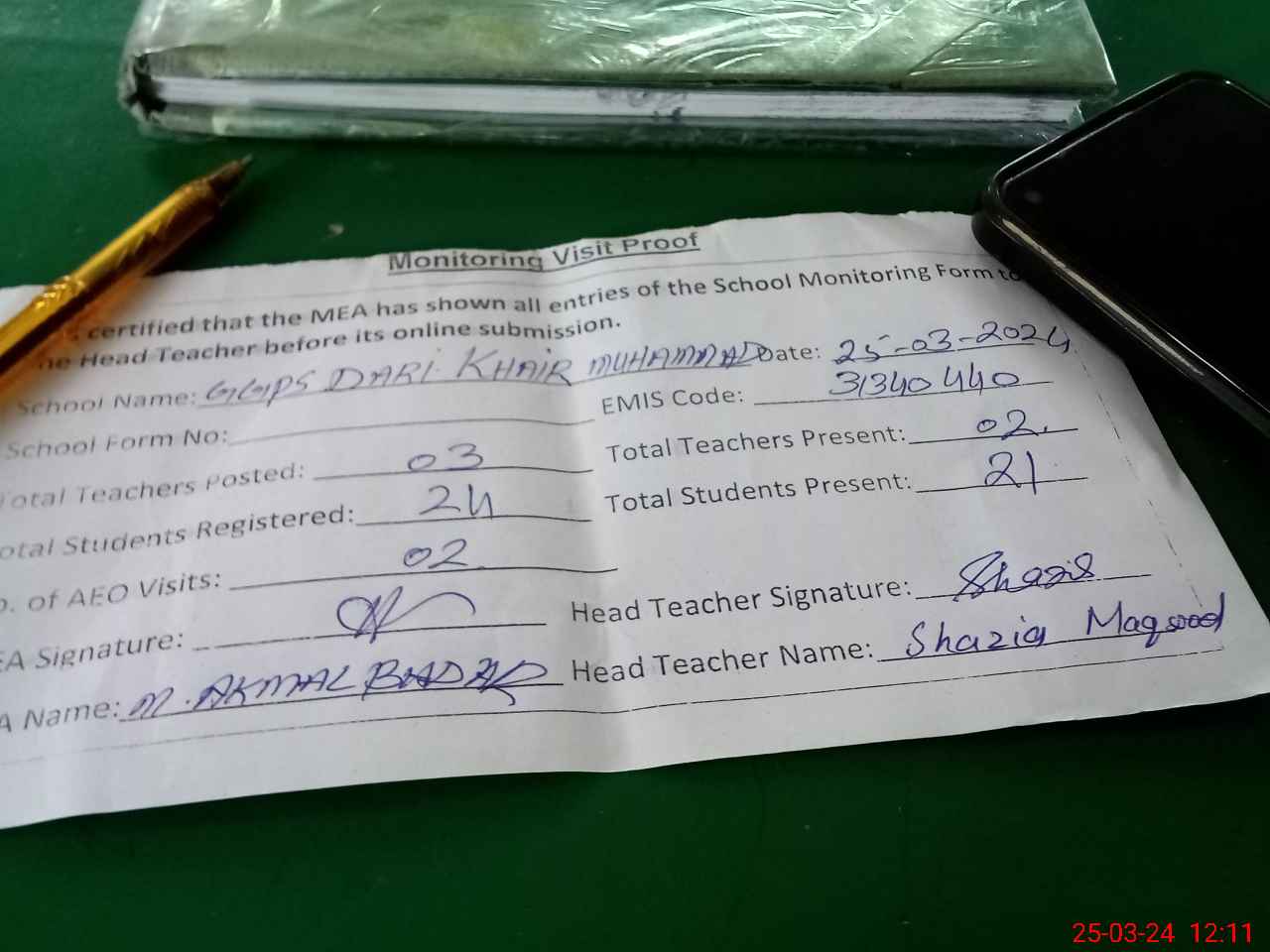 | EMIS Code: 31340440 | Name of School: GGPS DARI KHAIR MUHAMMAD | |||