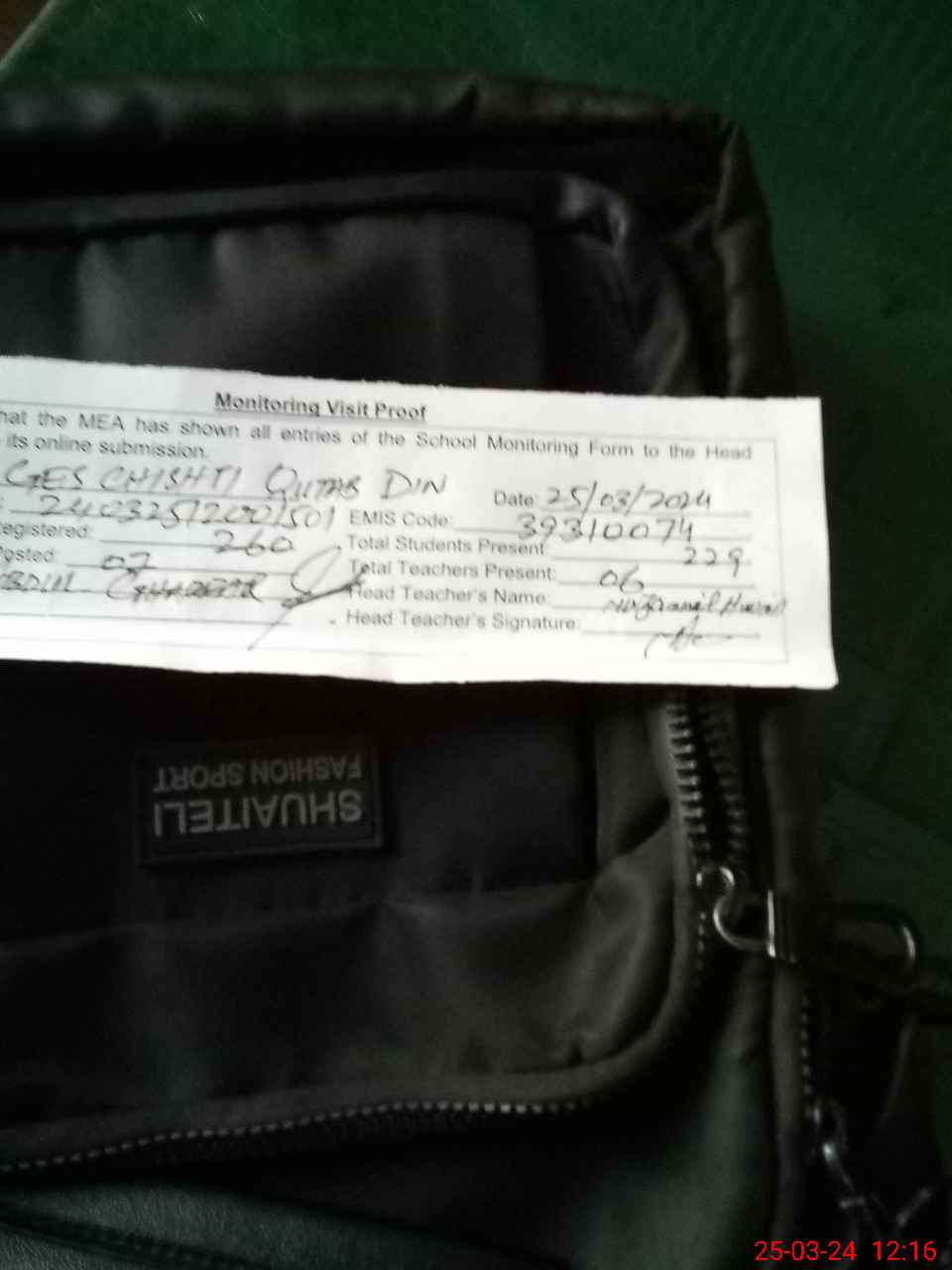 | Attendance Register | Head Teacher | MEA with School | Visit Proof |