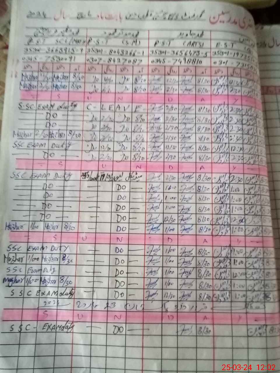 | 35**** | Mu**** Ma**** Fa**** | PST | Regular | 0 | 0 | 0 | 0 | 0 | 0 | 0 | 0 | 0 | Exam Duty |