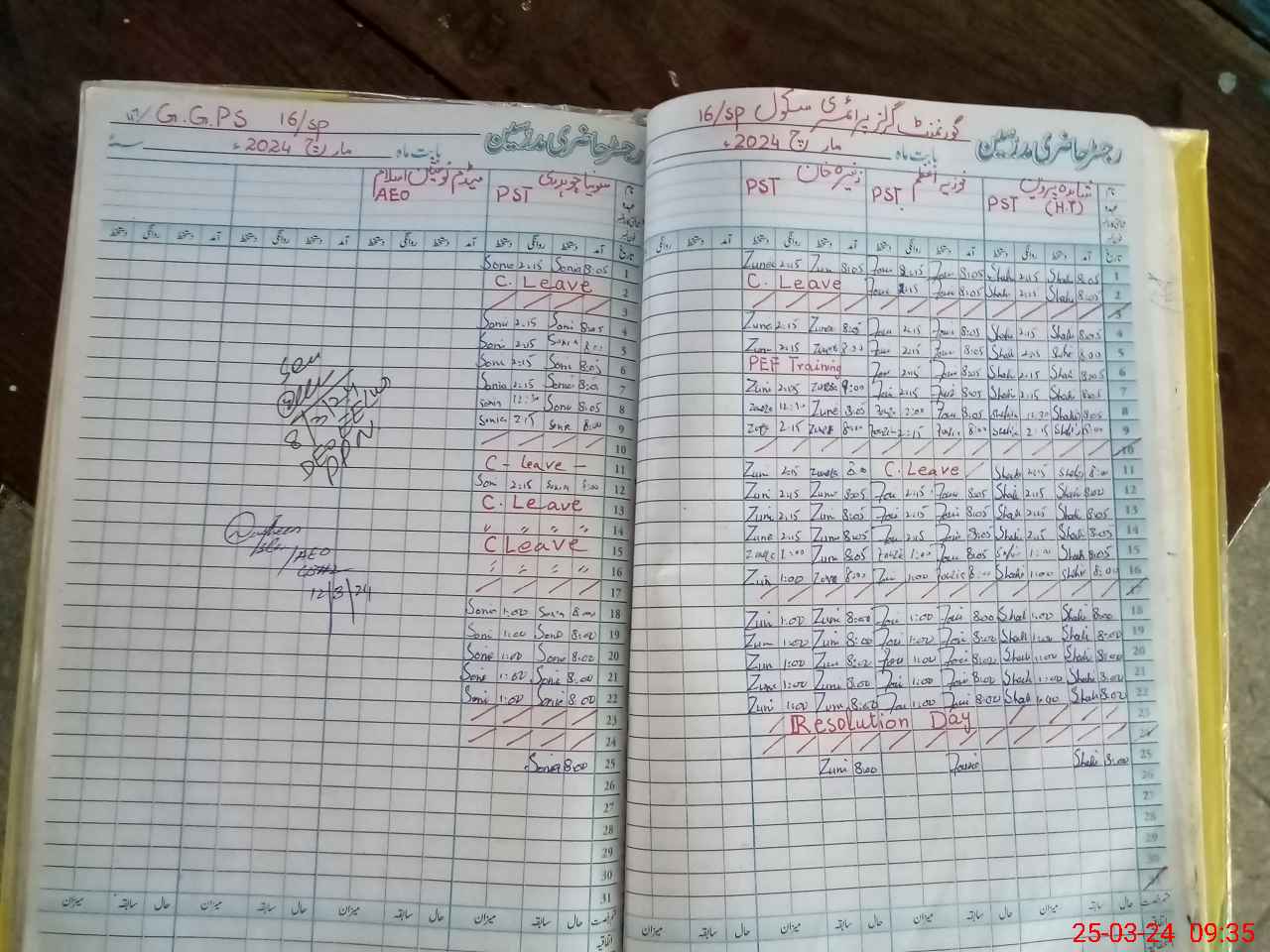 | Name: Zo**** Kh**** Designation: (School Headmaster's/Headmistress's) PST Phone/Cell Number: 03**** |