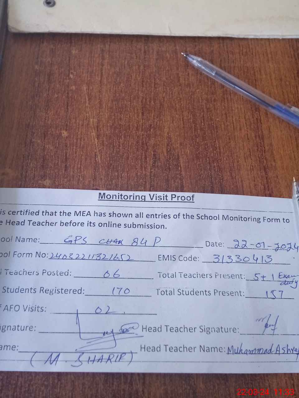 | EMIS Code: 31330413 | Name of School: GPS CHAK 84/P | |||