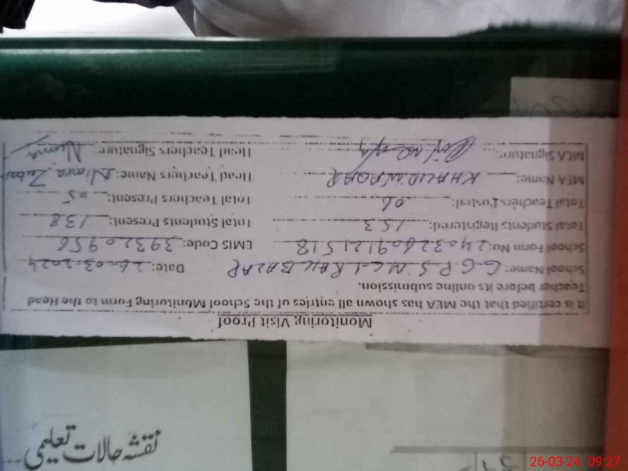 | Certified that this School was Inspected by the Undersigned MEA/DMO Today and the Information Stated Above is as Per Record. | |||||