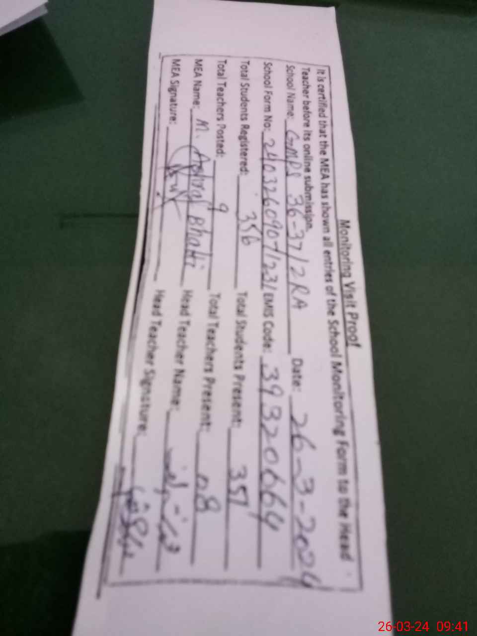 | EMIS Code: 39320664 | Name of School: GMES CHAK 36-37/2-RA | |||
