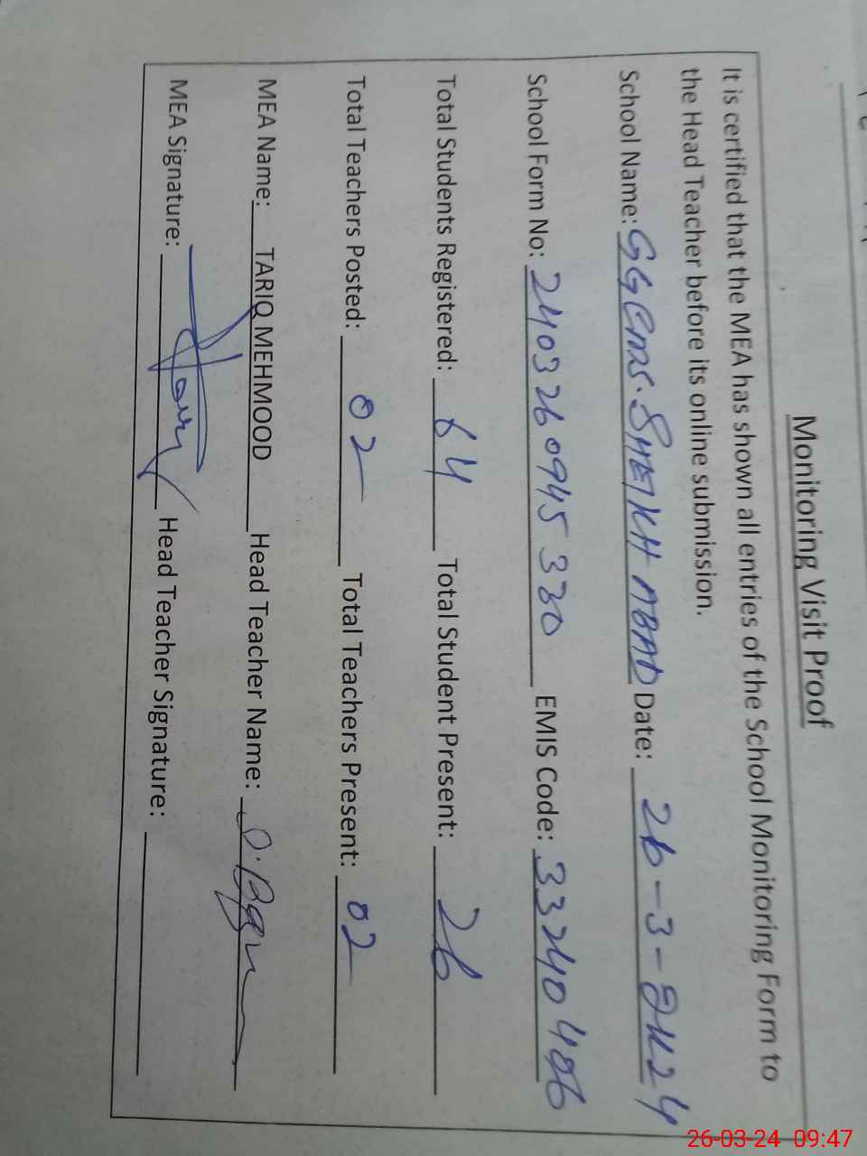 | EMIS Code: 33240406 | Name of School: GGCMS SHEIKH ABAD | |||