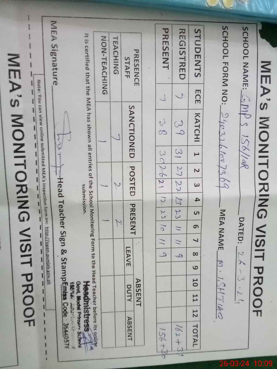 | EMIS Code: 36440576 | Name of School: GMPS 156/10-R, JAHANIAN | |||