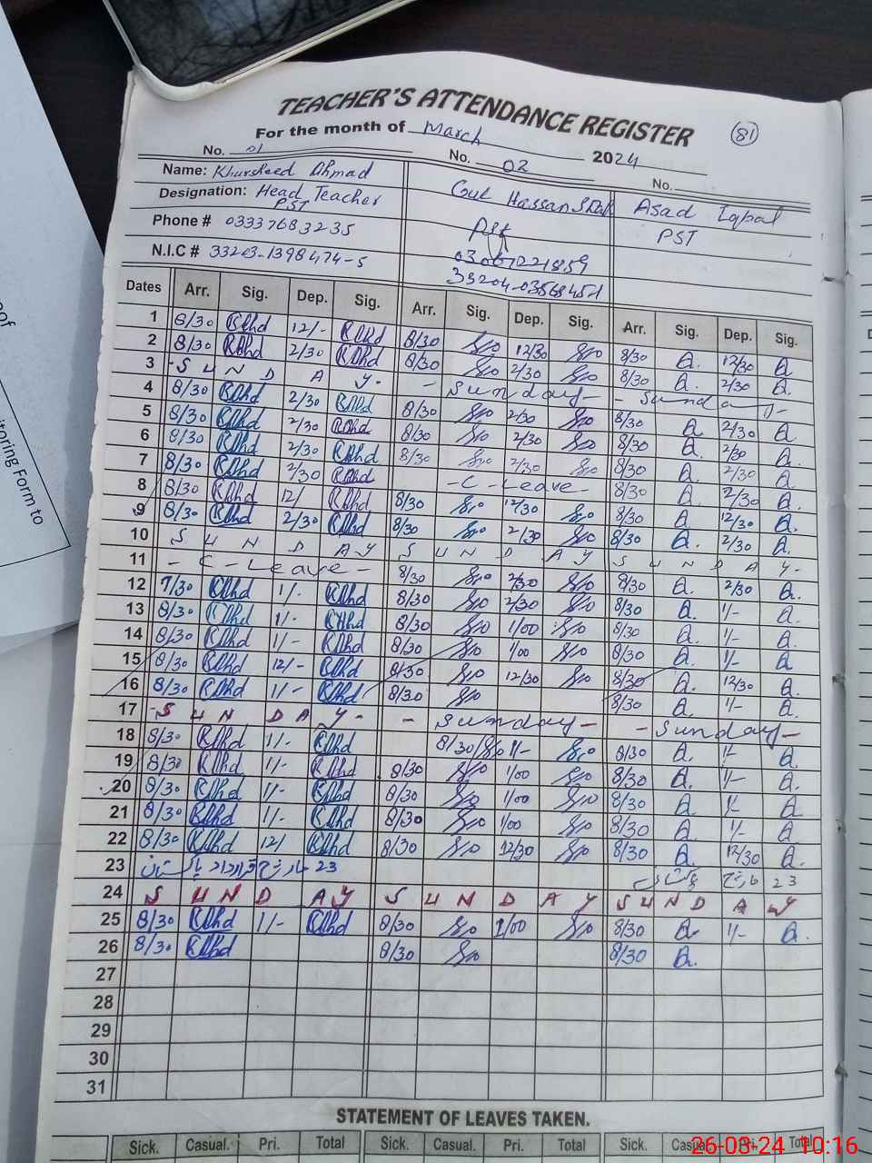 | Name: KH**** Designation: (School Headmaster's/Headmistress's) PST Phone/Cell Number: 03**** |