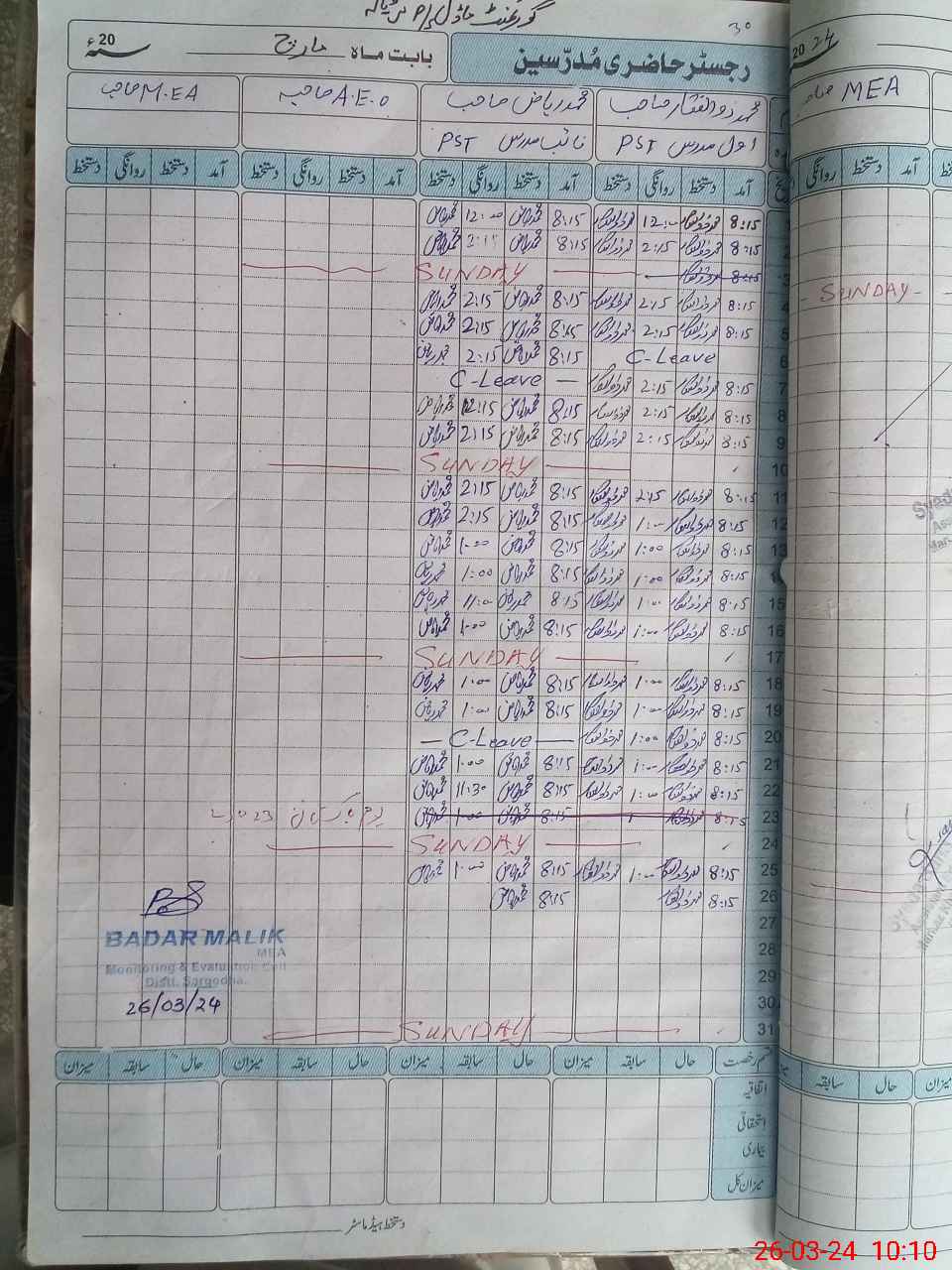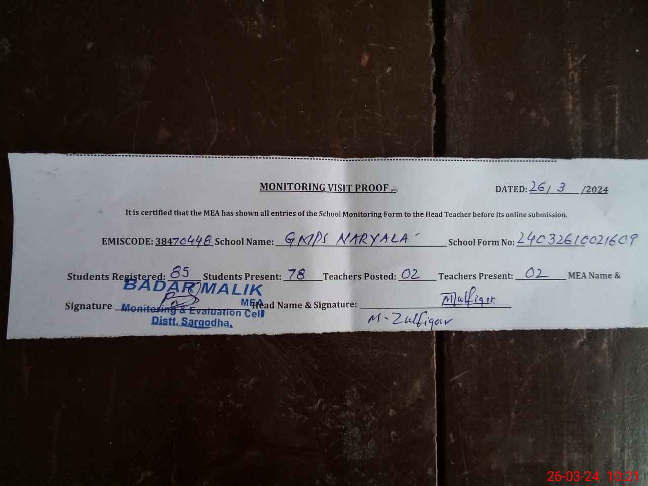 | Name: Mu**** Zu**** Designation: (School Headmaster's/Headmistress's) PST Phone/Cell Number: 03**** |